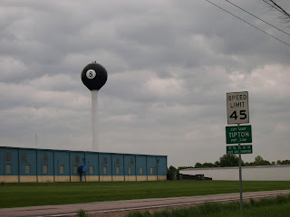 This picture taken in Tipton, Missouri where one of "The Byrds" Gene Clark is buried. He was a hero of we three Bros. The Water Tower was painted as an 8 Ball because of the Fischer Pool Company which was located in the town. It has since moved, however.